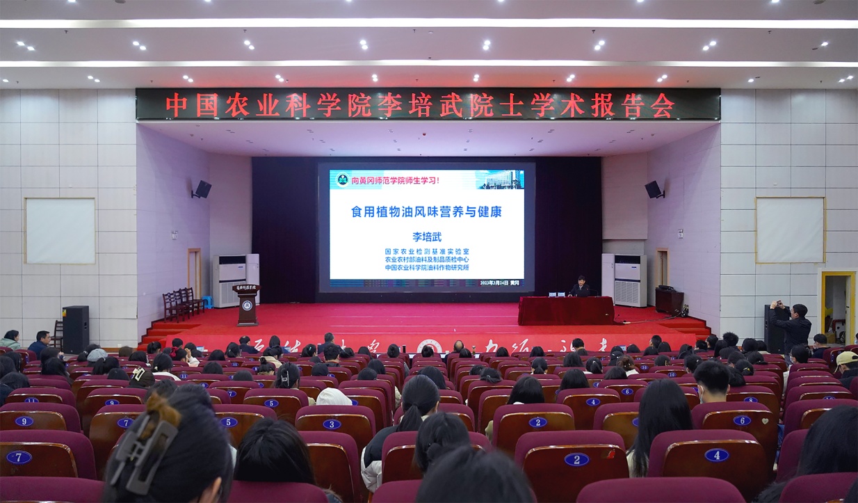 本网讯 2023年3月24日上午,中国工程院院士、中国农业科学院研究员李培武院士应邀为我校师生作题为“食用植物油风味营养与健康”的专题报告。受正在参加黄冈市第六届人大第三次会议的校党委书记陈向军,党委副书记、校长漆昌柱委托,副校长马志斌主持报告会。会前,漆昌柱会见李院士并交流。