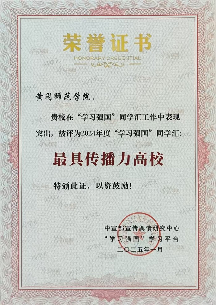 【黄师荣誉】我校荣获“学习强国”学习平台“最具传播力高校”称号